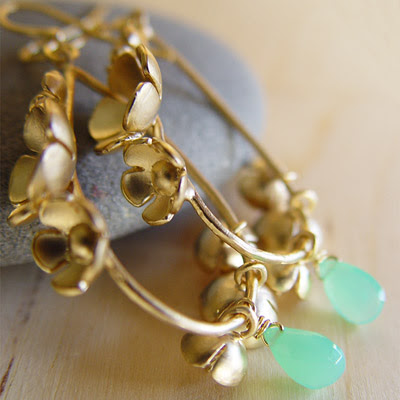 Precious Flower Green Chrysoprase Gold Earrings $56