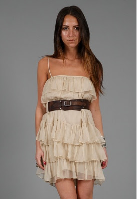 Haute Hippie Chiffon Tiered Dress with Obi in Nude $465